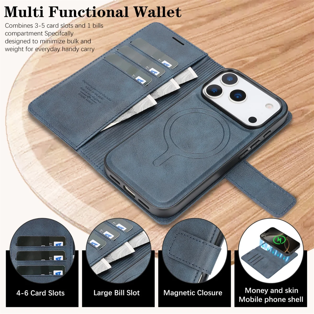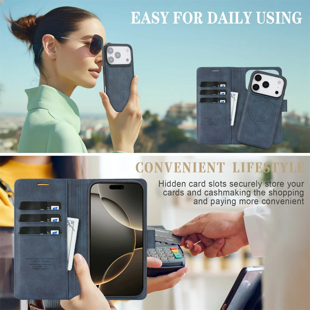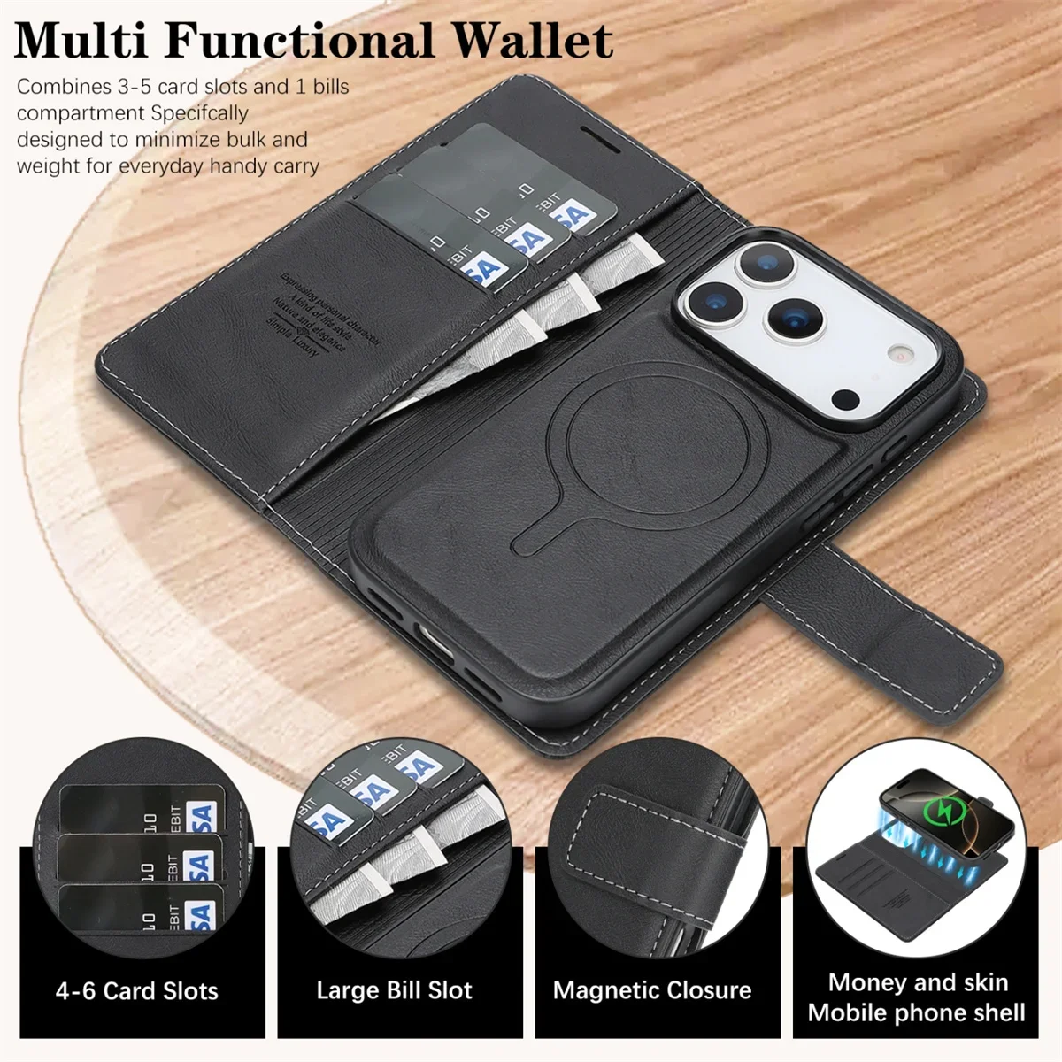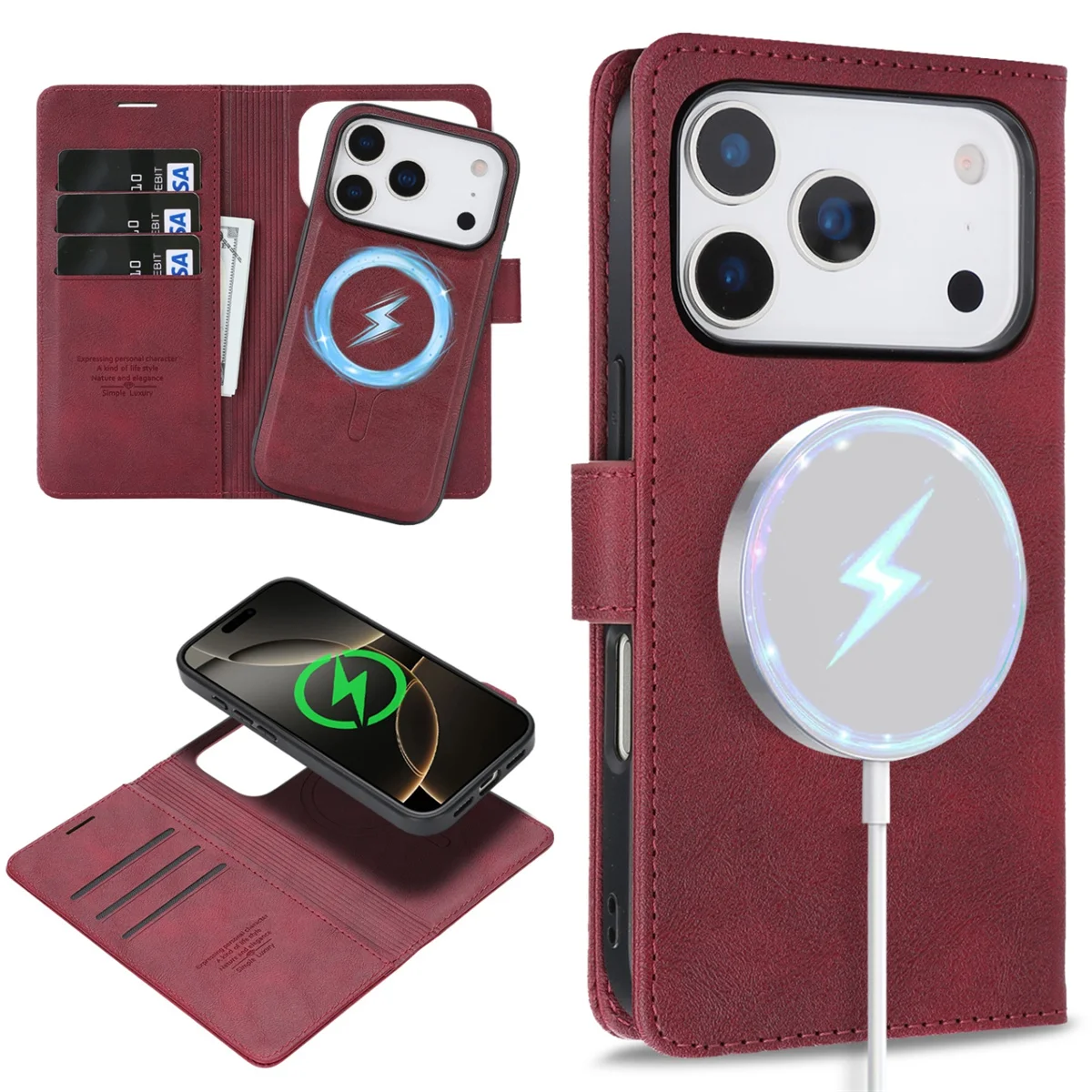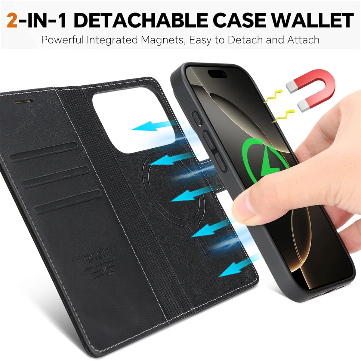 Danoz ChargeSmart MagSafe Leather Phone Cover for iPhone 17, Magnetic Wallet Case