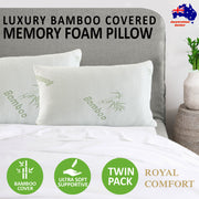 2 x Royal Comfort Bamboo-Covered Memory Foam Pillows (1 x twin pack)