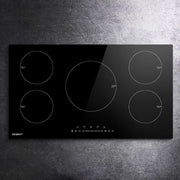 Experience the best of no-fuss cooking with the Devanti 90cm Induction Stovetop. Loaded with an extensive list of chef-friendly features such as five high-wattage cooking zones, a touch control LED display panel, independent 99-min timers, overheat protection and efficient heat dissipation, this cooktop is perfect for the busy family or on-the-go home cook. It features five cooking zones with nine power levels to choose from to prepare that perfect dish. Its high-grade black ceramic glass plate is sleek and elegant, and the residual heat indicator will let you know when it is safe to touch after cooking. Better still, the cooktop will turn itself off if temperatures get excessively high or you simply forget to turn it off after your cooking, and a child lock prevents small hands from using the stovetop unsupervised. Powerful and yet integrally safe, the cooktop promises many moments of hassle-free delicious cooking with the right blend of sophistication and class for your kitchen.