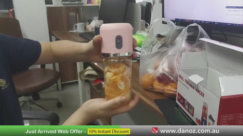 Experience the convenience of fresh, nutritious drinks anytime with Danoz Portable Blender Bottle.