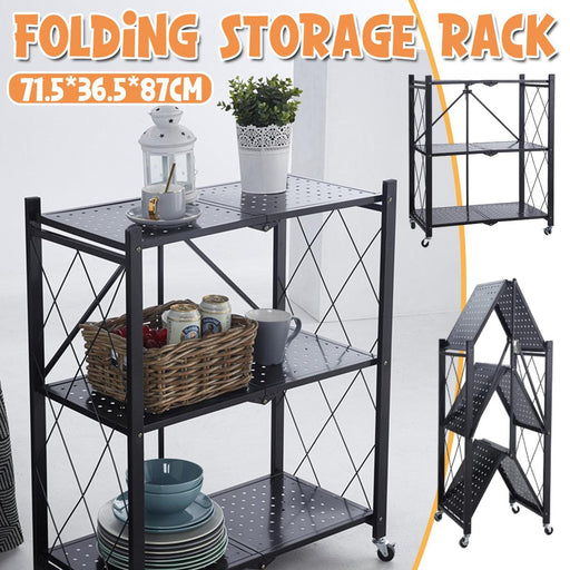 Danoz Direct Marketplace 🎯Enhance your kitchen organisation with this versatile 3-tier black foldable storage rack, designed for convenience and efficiency. Featuring a no-d...