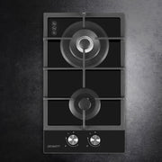 Whether it is for your existing or new home, our Devanti 30cm Gas Cooktop is just the right thing you need for easy, no-fuss cooking. Loaded with an extensive list of chef-friendly features such as an easy ignition system, easy-to-use galvanized knob control with a safety lock and flame failure safety device, the cooktop is also incredibly sleek with its black tempered glass surface. It features two burners, a wok burner and one auxiliary burner, with various power levels to choose from to prepare that perfect dish. The solid cast iron grates hold up your pots and pans perfectly steady and are longlasting and heat-resistant as well. And a pan support is included for use with the auxiliary burner to prevent tiny pans from tipping over and messing up your cooktop. The cooktop is factory set for natural gas but is compatible with LPG once the included LPG conversion kit is installed. Powerful and yet integrally safe, the cooktop promises many moments of hassle-free delicious cooking with the right blend of sophistication and class for your kitchen.
