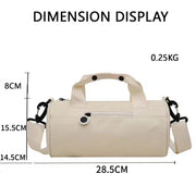 The cylindrical design provides a sleek, modern look, while the side zipper pocket offers convenient access to smaller items like keys or cards. Lightweight at just 0.25kg, this bag is easy to carry without adding bulk. Whether you're heading to the gym or embarking on a weekend getaway, this travel bag combines practicality and style for all your adventures.