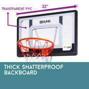 You can be sure that your fun will last, with easy and quick set up. The Dr Dunk 8.5ft Basketball Hoop System includes a 33" x 23" clear polycarbonate backboard, an adjustable steel pole, and a weighted mobile base on wheels that can take 90 litres of water for supreme stability. Set up and start shooting today.