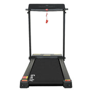 For a truly effective approach to weight loss and toning, our Everfit Fitness Treadmill is your perfect companion. Compact and sturdy with its powder-coated steel frame, the treadmill allows you to perform essential cardio exercises within the comfort of your home. The treadmill features 12 pre-set training programs designed to simulate natural terrain. A user-centric control panel with a digital LCD display lets you set up speeds of between 1km/h and 14km/h and monitor other parameters. Its powerful and energy-efficient motor produces smooth and seamless operation and the anti-slip belt and soft-grip handlebar make your session a comfortable and controlled experience. When all the hard work is done, fold and store away the compact treadmill away easily. Other great features include safety tether key, smooth wheels for easy mobility and tablet holder. For health results that matter, our fitness treadmill is the one to run to.
