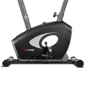 Find a fulfilling and user friendly workout with the Lifespan Fitness EXER-58 exercise bike. Variable manual resistance offers eight levels of workout intensity at the turn of a dial. With a heavy duty magnetic flywheel, the tension created is smooth and silent, making cadence consistent, especially paired with the heavy duty belt drivetrain. GENERAL - Manual Tension, 8 levels of resistance - Handle Bar: Fixed - Belt Drive - Three piece crank - Special seat designed for maximum comfort - Includes up/down & - forwards/backwards adjustments - Includes foot straps to secure footing during exercise - Features: Smooth and silent belt transmission - Saddle vertically and horizontally adjustable system - Maximum user weight: 100kg - Suggested Maximum user height: 190cm - Top Seat to Bottom Pedal Arc Range: TBD COMPUTER AND PROGRAMS - Computer: LCD Computer Display - Shows: Time, Speed, Distance, Calories, Pulse & Room Temperature RPM, Odometer TECHNICAL - Frame: Tubular Steel Assembly Required: This product comes partially assembled in a box with assembly instructions included.