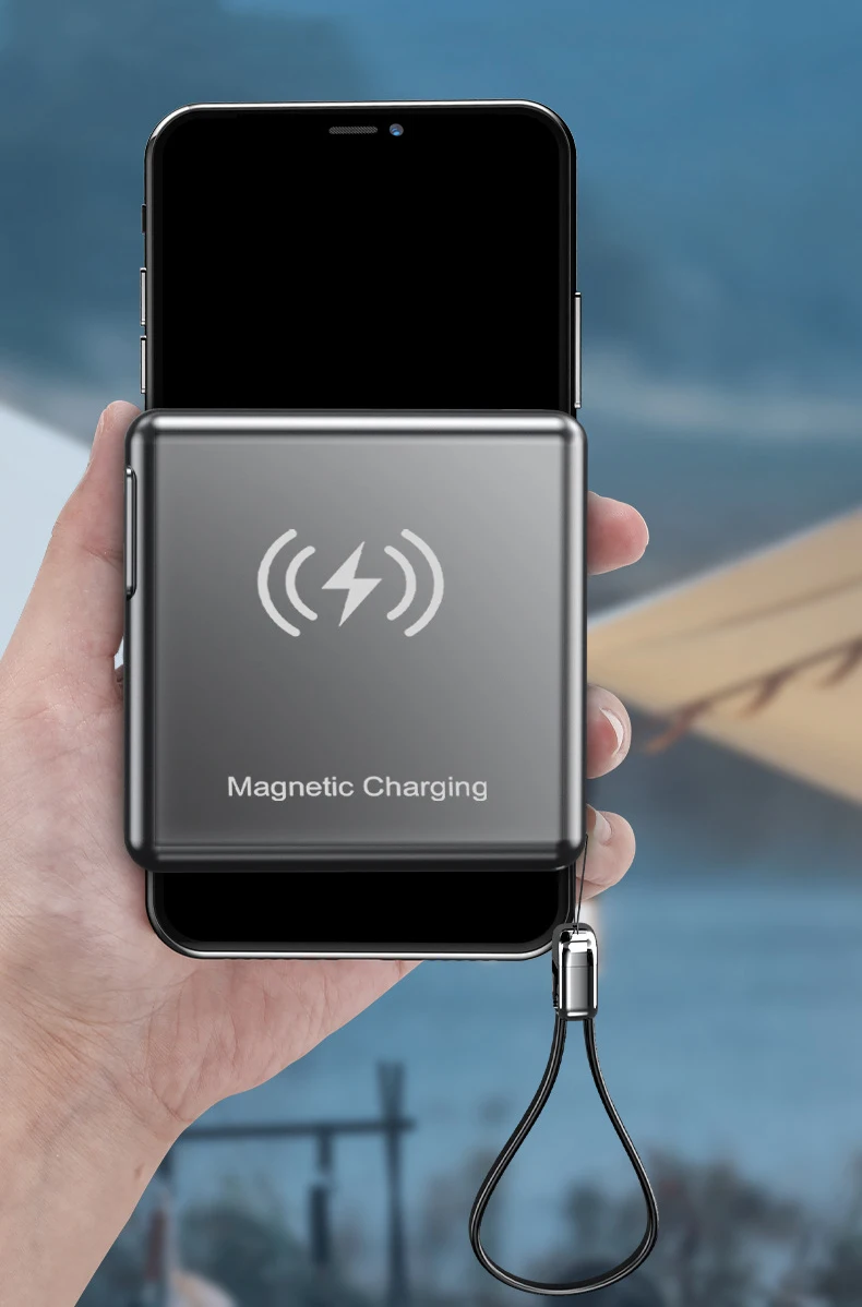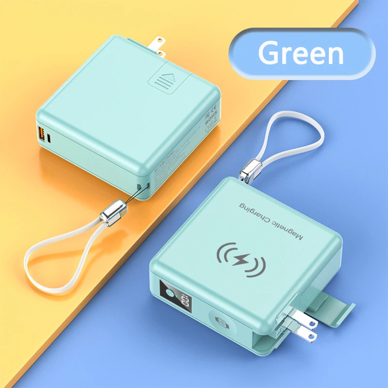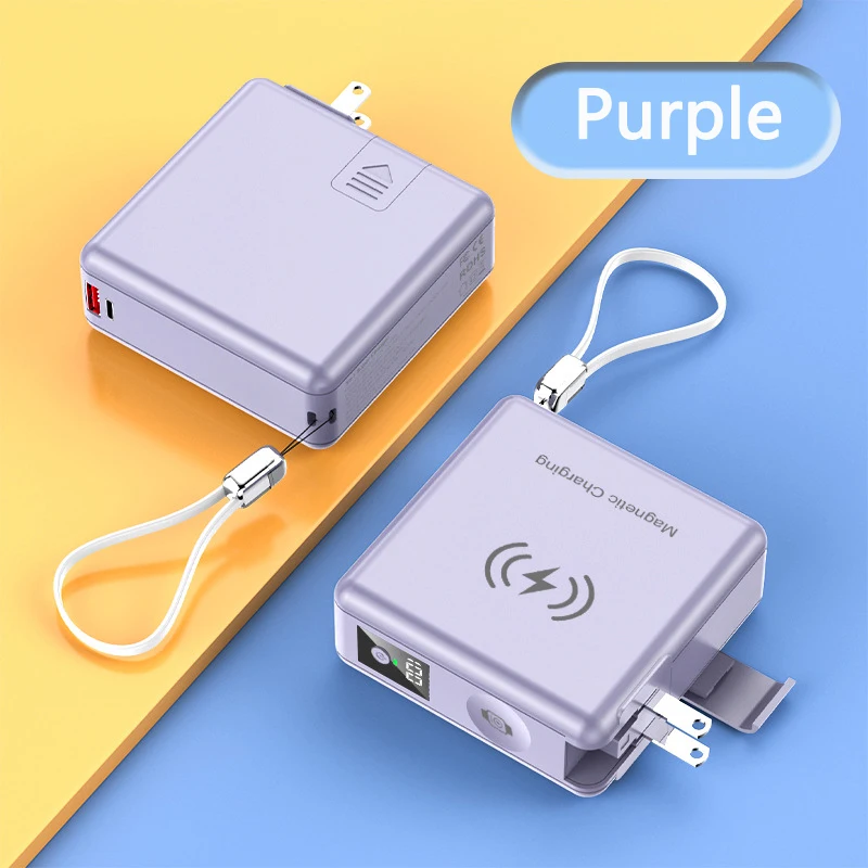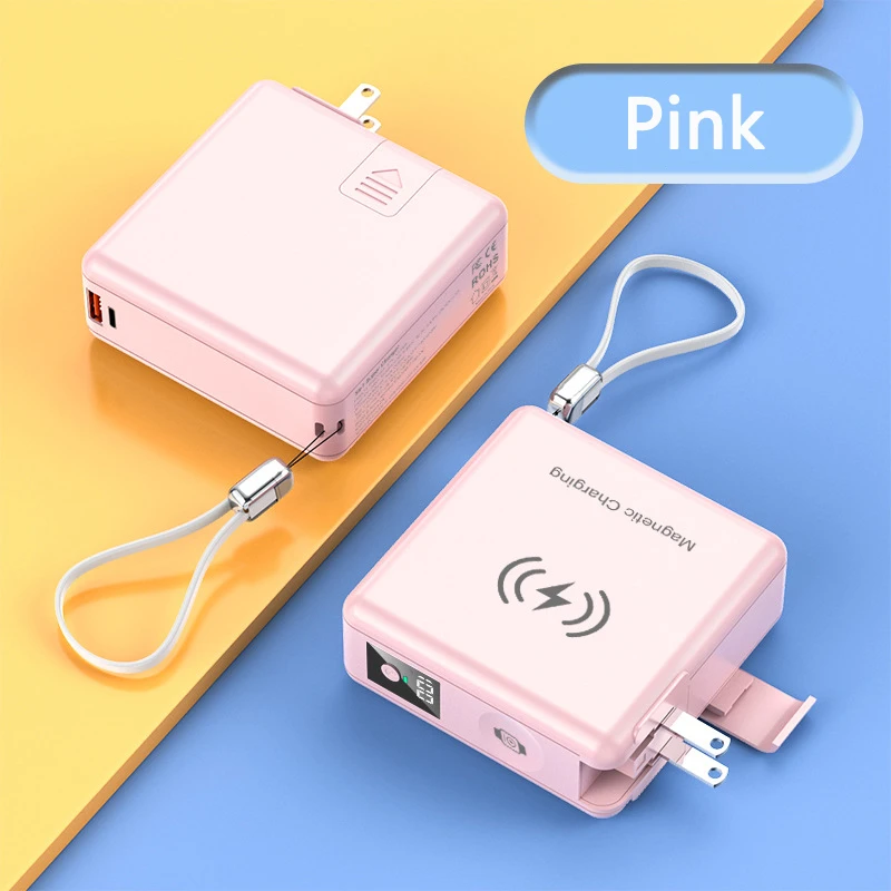 With a built-in AC plug, this sleek and compact power bank also features a Qi wireless charger, a magnetic wireless charging port, and built-in cables for easy charging on the go.