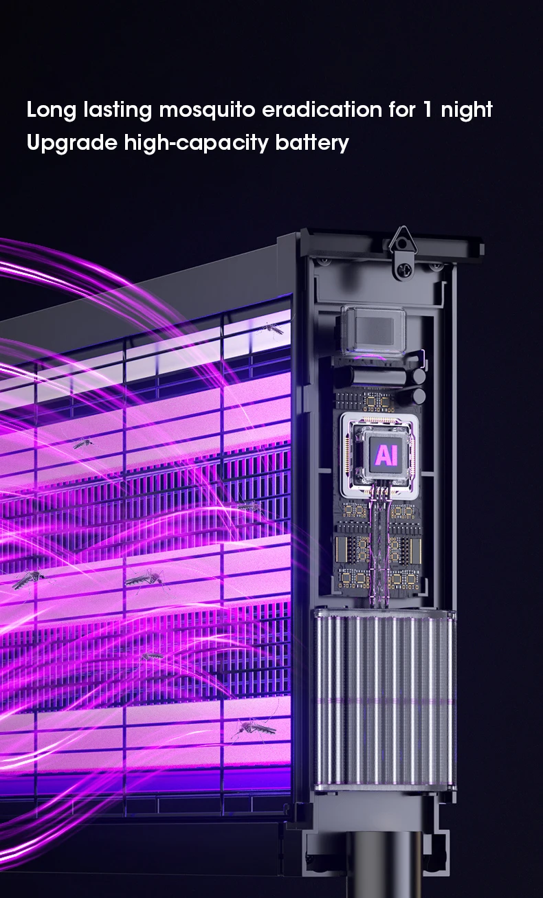 The triple purple light tubes attract pesky mosquitoes, while the new four-edge carbon power grid delivers a quick one-touch zap to keep your space bug-free.