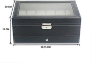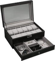 12 Slot PU Leather Lockable Watch and Jewelry Storage Boxes (Black)
