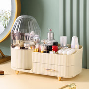 Rotating Makeup Organizer Box - Multi-Compartment Cosmetic Storage with Dustproof Cover