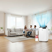 Experience versatile climate control with the Devanti 12000 BTU Portable Air Conditioner. This 3-in-1 unit cools, dehumidifies, and circulates air efficiently. Enjoy smart features like WiFi app control, remote operation, and sensor touch panel. The quiet smart sleep mode ensures restful nights, while the swing function evenly distributes airflow. Easily move it with built-in handles and castors. Includes window exhaust kit for simple setup and removable filter for maintenance. Great for hot summer days!