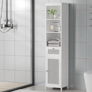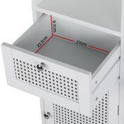 Keep your bathroom organised with an Artiss Bathroom Storage Cabinet. This neat and tidy storage solution is made from durable MDF and PVC rattan for long-lasting use. One generous drawer, a ventilated storage cabinet with two tiers and three open shelves give you plenty of room for your bathroom essentials. Smooth silver handles help you pull out the drawer and open the magnetic cabinet door with ease. The rattan cabinet doors allow for proper airflow throughout the shelves, preventing mould and bacteria build-up. The space-saving design means you can place it anywhere in your bathroom, laundry or other room with ease. Easy to install and easy to clean, the Artiss Bathroom Storage Cabinet is just what your bathroom needs to stay tidy.