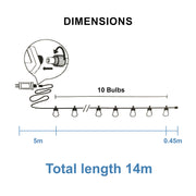 Danoz Xmas๐ Festoon String Lights 10 Bulbs 14M Fairy LED Waterproof Outdoor Christmas Party