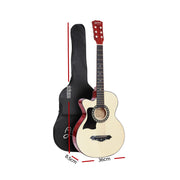 Sitting out on the porch playing guitar and singing with your mates or even going away sitting around the campfire and singing in harmony is definitely enjoyable and fun; and you will need this affordable Acoustic Cutaway Steel-Stringed Guitar to complete your performance.Crafted from the finest materials, the guitar is made of laminated linden for its top, back, and side. With the Hard Wood neck and Maple Wood Fingerboard, the cutaway delivers beautiful sound and chic look at one time. The delicate process of manufacture including bracing and finishing techniques, thickness and wood tuning guarantee this guitar a real pleasure to play.