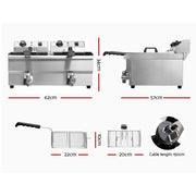 Danoz Kitchen - Devanti 20L Electric Commercial Deep Fryer Double Baskets Oil Taps 6000W