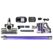 The Devanti Handstick Vacuum works as a normal stick vacuum and, with just a removal of the stick, instantly becomes a handstick vacuum. Its powerful 150W 30000rpm motorized head has a steady suction power of up to 8000Pa. And a 160?swivelling head that can be fitted with optional brushes and nozzles for different types of surface and zone cleaning also allows it to pick up dirt, debris and anything in its path easily. The one-handed design is lightweight and bagless. All collected dirt and debris pass through a washable and reusable HEPA filter that eliminates up to 99.97% of dust and allergens. Not least, the rechargeable 2000mAH lithium-ion battery can run continuously up to 35 minutes on a full charge.