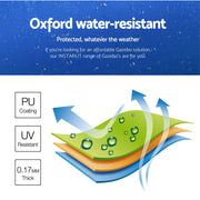 With a wide roof coverage of 300cm by 600cm, the exceptional 6kg cover is made of durable PU coating Oxford fabric that’s both UV and water resistant. No more worries about being too hot or too wet, you can get your event going with total peace of mind from the elements. Giving you ample dry cover from rain and adequate protection from UV radiation.