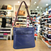 Danoz Direct - Milleni Womens Italian Leather Bag Soft Nappa Leather Cross-Body Travel - Indigo/Chestnut