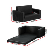 Danoz Kids - Keezi Kids Sofa 2 Seater Children Flip Open Couch PU Leather Armchair Black