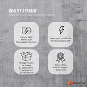 Upgrade your audio experience with this versatile LED Wireless Charging Speaker. Whether you're setting the mood with ambient lighting, charging your devices, or enjoying your favourite music, this all-in-one device has you covered. The rechargeable battery makes it portable and perfect for any room in your home or to take with you, it combines functionality and style to enhance your everyday life..