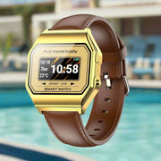 Danoz Smart - Leather Band Smartwatch With Waterproof Colour Screen - Gold