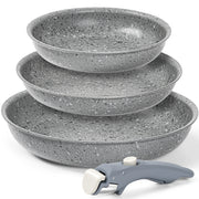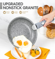 Each pan boasts a premium granite-inspired nonstick surface that glides smoothly under your spatula, resists scratches like a champ, and stays PFOA, PTFE, and PFAS-free for peace of mind.