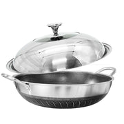 Danoz CookSmart - Double Ear 304 Stainless Steel 38cm Non-Stick Stir Fry Cooking Kitchen Wok Pan with Lid Honeycomb Double Sided