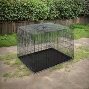 Featuring a foldable design with triple access doors, this dog cage offers maximum convenience and is extremely safe for containing your pets. It's metal constructed with a powder coated finish enhancing durability and is also rust resistant. Easy to setup, store, transport and clean. Great for securely keeping your pets contained, a must have for every pet owner.