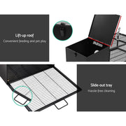 First up, the pitch-roof enclosed shelter has a 20cm diameter slot opening for easy entry and excess and ample space for your pet to rest and snooze. A slide-out mesh tray at the back makes for convenient cleaning without dismantling the whole assembly apart. On top of that, the roof can also be opened up for more access.