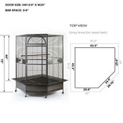 YES4PETS 185cm XXL Corner Bird Cage Pet Parrot Aviary Perch Castor Wheel