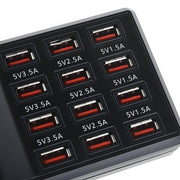 - Plug into any wall outlet and charge up to 12 USB devices simultaneously.