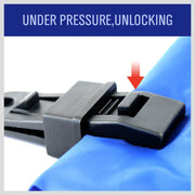 - Ratchet and lock jaws grab and squeeze material into place.