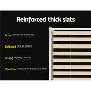 Sleek and elegantly finished in solid pine wood, the Artiss Jade Bed Frame is truly a stylish addition to any bedroom. Simple in design, the Jade Frame is meticulously constructed for durability, strength and environmental friendliness with its non-toxic finish. Across the frame, plywood slats provide good weight distribution as well as ensuring that the mattress stays in place with every twist and turn of your sleep. Underneath, central support beams further steady the bed under robust use. Not least, you will also find plenty of storage underneath the bed for those who are space-challenged with their bedrooms. Designed to fit standard Australian-sized mattresses effortlessly, the Artiss Jade Bed Frame is guaranteed to give you pleasant dreams with every sleep.
