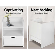 Danoz Bedrooms 🛏️ Artiss Bedside Table 1 Drawer with Shelf - FARA White - Incl. Postage
