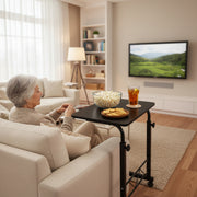 Designed to be strong and lightweight, our Mobile Laptop Desk has ample desk area to work efficiently without feeling cluttered. The height is easily adjustable to your preference and the U-shape design fits in well with most furniture such as sofas and beds to get a comfortable sitting position. The castor wheels rotate 360 degrees and can be readily locked down in place. Or, if you like, remove the detachable wheels for a more permanent fixture. Not least, with its thick 17mm MDF board desk top and sturdy powder-coated H-shape steel frame, our Mobile Laptop Desk is absolutely versatile to function as any type of table top.