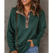 - Stylish Geometric Texture Plaid Trim Sweatshirt