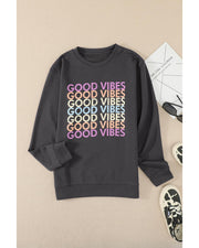 - Stay stylish and comfortable with this GOOD VIBES Graphic Pullover Sweatshirt