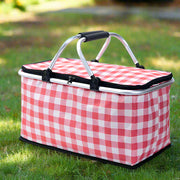 Collapsible Outdoor Camping Portable Insulated Picnic Basket Camping Picnic Ice Pack(Red Grid)