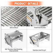Engineered from premium stainless steel with reinforced 1mm-2mm construction, this charcoal grill resists rust and corrosion while the food-safe 304 grid guarantees safe meal preparation.
