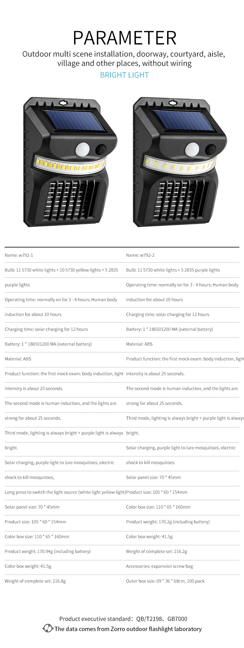 Danoz Pests - LED Solar Mosquito Killing Lamp UV Electric Shock Mosquito Killer Human Intelligent Induction Outdoor Waterproof Wall Lights - Buy 1 Get 1 Free!