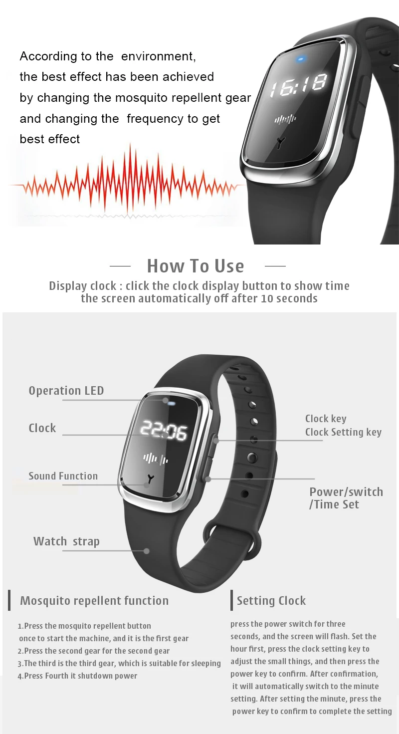 Danoz Smart - Xiaomi Ultrasonic High-Tech Mosquitoes Repeller Bracelet Wristband Indoor Outdoor 3 Gear Bracelet Anti Mosquitoes Bite Wristband