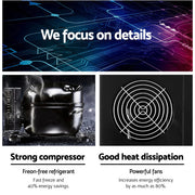 You can easily monitor the water level or when the ice cube container is full and there is an automatic indication when the water level is low. Other great features include a large heat dissipation fan for excellent cooling, a 19.5-hour timer setting, convenient water drainage plug and non-slip feet for a stable operation. Not least, the ensemble works ever so quietly and complies with current Australian standards.