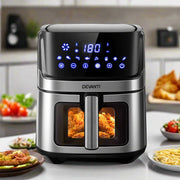 Enjoy your favourite fried foods without guilt thanks to the Devanti 6.5L Air Fryer. With their smooth and stunning sleek exterior, our Devanti Air Fryers turn ordinary food into extraordinary dishes thanks to their exceptional cooking abilities. With its innovative air frying technology and 1700W of power, you can cook quickly and efficiently. The 6.5L capacity is suitable for a full set of meals from sides to mains. Better still, all this wonderful cooking is done without a drop of oil and is as delicious and succulent as your favourite fried treats. Foods cooked in our air fryer have up to 80% less fat than regular deep-fried foods. Choose the time, temperature and cooking preset with the easy-to-use LCD touch control panel. The tempered glass viewing window makes it easy to check your cooking progress. The interior features a non-stick pan for easy cleaning and a removable crisper tray for the ultimate crispy, crunchy experience. It also features an automatic shut-off switch, a cool touch handle, a heat shield vent, and non-slip feet for safety. Most importantly, the components are all dishwasher-safe, making cleaning as easy as pie. Get yours today and see the benefits of fat-free cooking!