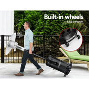 Safety wise, the Devanti Gas Patio Heater ensures that every part of it can be operated with total peace of mind. A 9kg gas cylinder is safely and securely stowed inside the stainless steel base with securing belts. Other great features include easy access to the on/off valve, lockable hinge door, flame guard, automatic gas cut-off when tipped over and many more. And the entire ensemble comes with built-in wheels for easy portability.