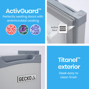 The Gecko Camping Fridge Freezer is designed to perform in harsh Australian conditions with quality compressor technology and thick insulation for fast cooling and operation in ambient temperatures of up to 38 degrees! The Gecko range features ActivSealTM technology which consists of perfectly sealing doors with an anti-microbial coating to inhibit the growth of germs. The Gecko also has flush recessed handles a great feature for confined spaces. All this is wrapped in a sleek TitanelTM metal finish, ensuring it will look right at home, anywhere!