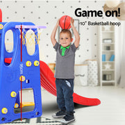 Danoz Kids - Keezi Kids Slide Swing Set Basketball Hoop Outdoor Playground Toys 120cm Blue