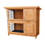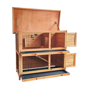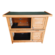 Crafted from solid fir with an amber stain, this hutch will look amazing in your backyard or garden. Its rustic finish shows off the grain of the wood, while its durable construction and powder-coated wire mesh will protect your pets for years to come. It's waterproof and easy to assemble – and you can even use it to shelter two animals simply by separating each level. Pull-out trays and an easy-open roof make cleaning a breeze. Your pets deserve a home as lovely as your own. Get your two-storey hutch today!