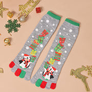 Celebrate the joy of the holidays with these Penguin Christmas Toe Socks! Featuring adorable penguin characters, stacked gift boxes, and a festive snow-dotted background, these grey socks bring holiday charm to your wardrobe. The colorful toe design and soft material provide both comfort and fun. Perfect as a Christmas gift or stocking stuffer, these socks add a touch of whimsy to any outfit.