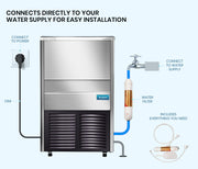 Danoz Appliances - POLYCOOL Commercial Automatic Ice Cube Maker, Free Standing Stainless Steel Ice Machine, 410 Grade
