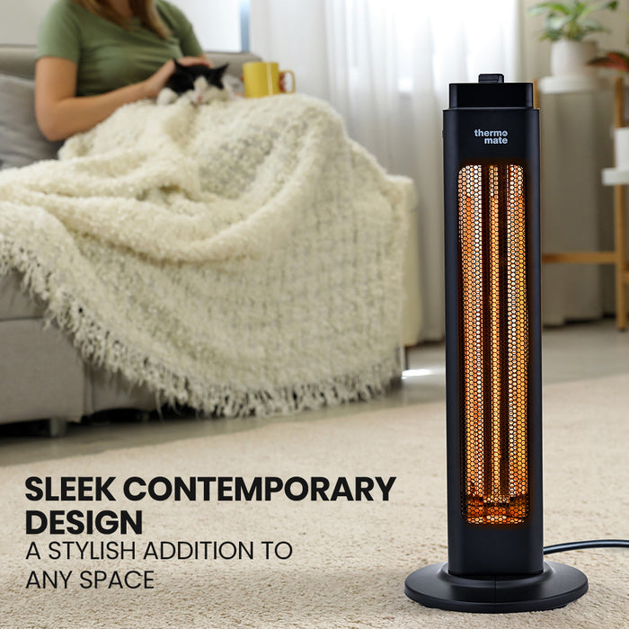 Equipped with an advanced carbon fiber 1200 watt element, the Thermomate heats up quickly, maintains consistent temperature, and is energy efficient. Choose from two heat settings, to adjust the warmth to your liking. For added peace of mind, this heater has an automatic function that switches it off in the event of it being tipped over.